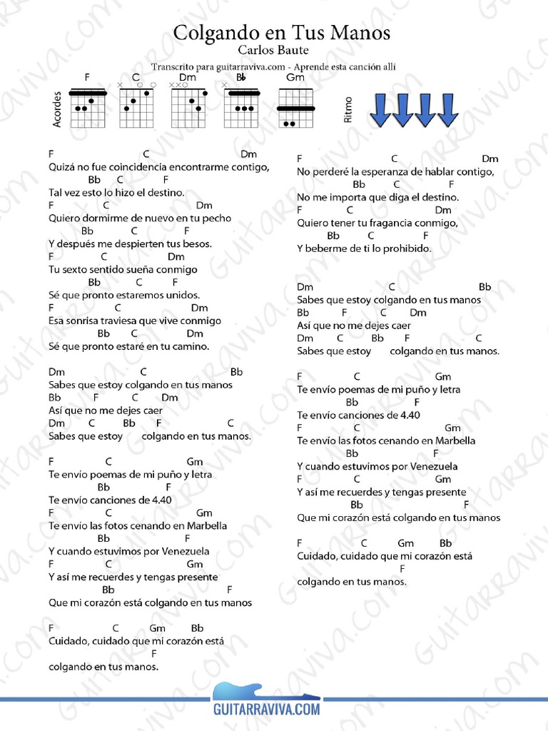 Acordes Colgando En Tus Manos - Fa do rem quiero dormirme de nuevo en tu pecho la# do fa y despues me despierten tus besos. Acordes Colgando En Tus Manos - Tu sexto sentido aun suena conmigo, se que pronto estaremos unidos.