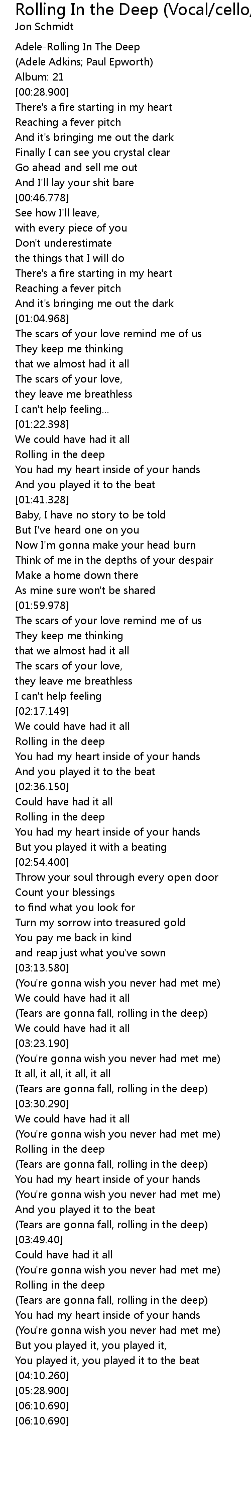 Adele Lyrics Rolling In The Deep : Baby i have no story to be told, but i've heard one of you and i'm gonna make your head burn. Adele Lyrics Rolling In The Deep : Baby i have no story to be told, but i've heard one of you and i'm gonna make your head burn.