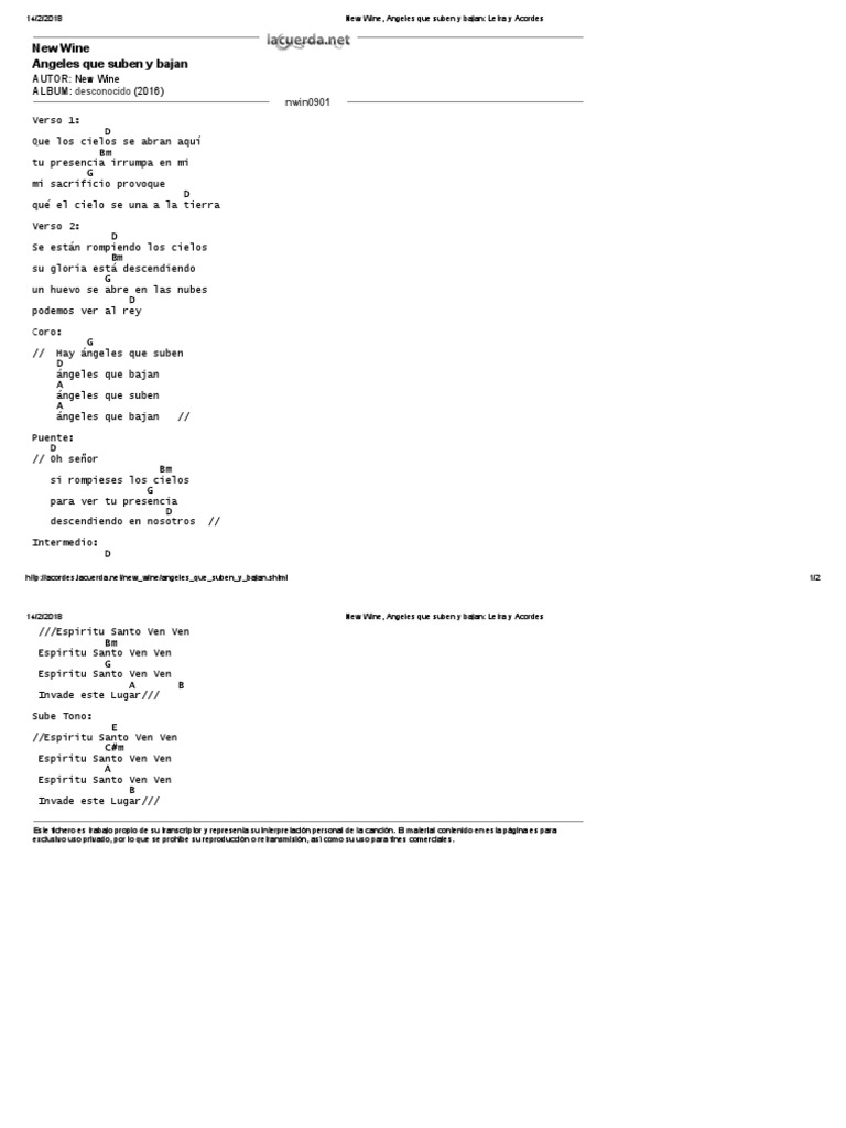 New Wine Angeles Que Suben Y Bajan Letra Y Acordes Musica Grabada - Kris o'donnell, daniela rua, barrett foa i dr.
